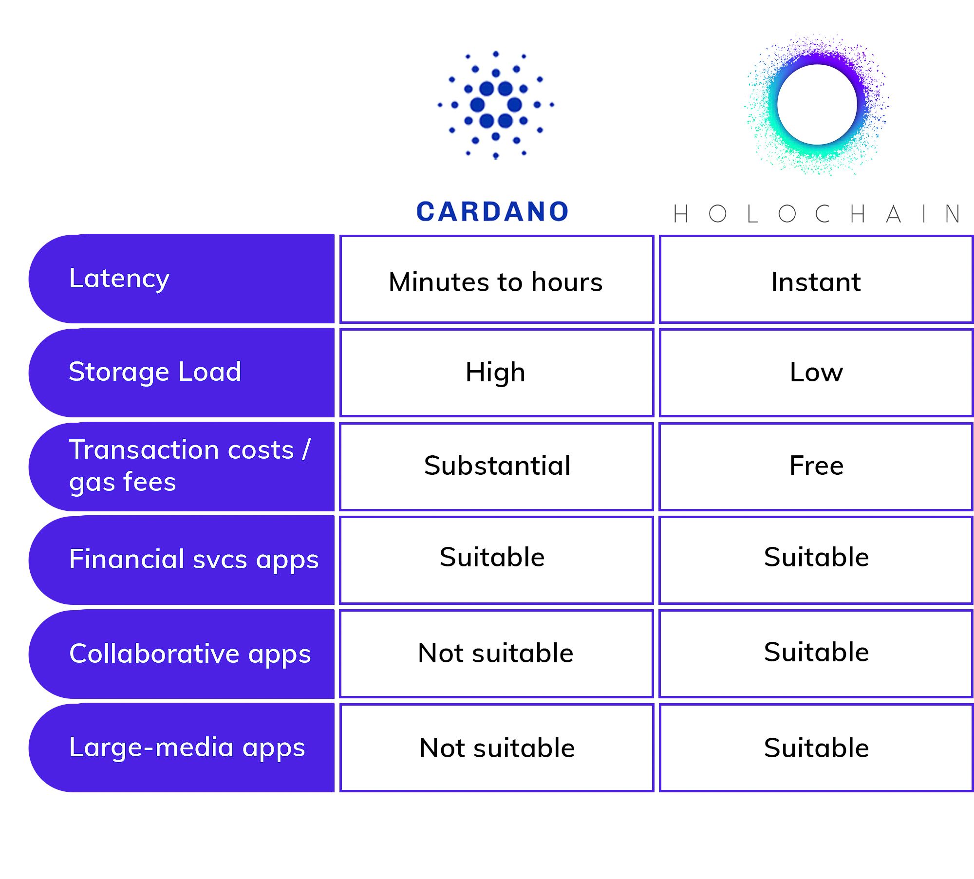 Whether Cardano is actually better than other blockchain protocols isn’t something we’ll try to settle here. What we can say is that Cardano is seeking to be a better blockchain protocol, which is fundamentally different than what Holochain is doing. Cardano and Holochain may ultimately be solving some of the same problems, but they face very different challenges along the way.