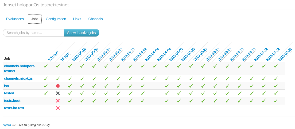 NixOS relies on a Hydra server, which serves as the distribution point for updates to the HoloPorts. Hydra is a tool for continuous integration testing, meaning we can have the application regularly take the source code of a project, build it, test it, and generate reports. This helps catch potential bugs before they go into production. Hydra can go from build to release for a variety of platforms in a fraction of the time it would take to do so manually.