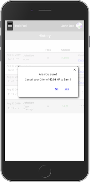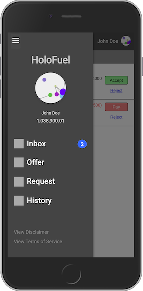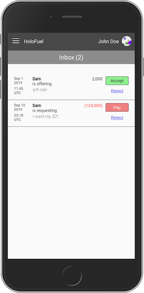 - Inbox: View and respond to offers and requests from other HoloFuel users