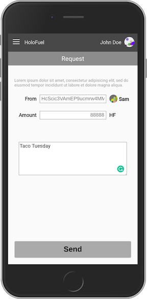 - Request: Request that someone send HoloFuel to you